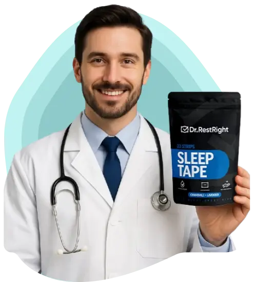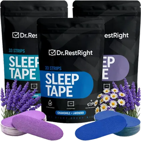 Dr. RestRight Mouth Tape uses breathable, hypoallergenic materials and is infused with soothing chamomile and lavender. It stays comfortably in place, promotes nasal breathing to reduce snoring, enhances sleep quality, and removes without any residue or irritation—unlike other mouth tape.